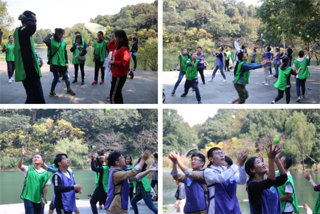 下午,在玉皇山腳,快速說口號、解手鏈、猜數字、隔空取物、前方打仗后方支援……一個又一個有趣好玩的素拓游戲將現場氣氛推向了高潮。大家全情參與,團結協作,八仙過海,各顯神通,玩得不亦樂乎。游戲過程中,每個人都在總結發現問題,思考解決方法,提升自己的同時,更提升團隊的“戰斗力”。