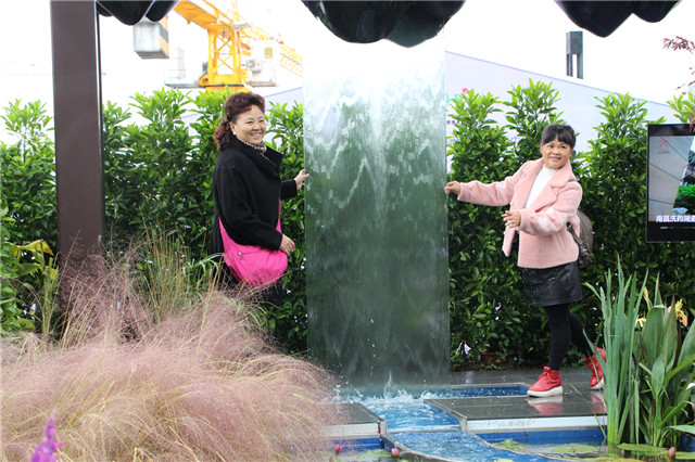 因為獨出心裁的設計和布置,人文園林展位受到了廣大市民的青睞,特別是流動水幕和鏡面水景,讓這里成為了市民們拍照的熱門地點,大家紛紛排隊合影,留下一個個精彩瞬間。