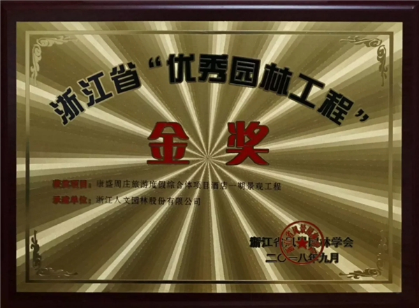 12月21日,浙江省第八屆“園林人居”論壇暨2018年“優秀園林工程”獎頒獎大會在杭州納德自由酒店隆重召開,浙江人文園林股份有限公司副總裁錢茜萍出席會議并代表公司領獎。公司承建的“康盛周莊旅游度假綜合體項目酒店一期景觀工程”、“大余縣縣城部分路段提升改造工程”榮獲“優秀園林工程”金獎,“上饒市廣豐區現代農業示范園(三都)核心區景觀項目設計、施工一體化”榮獲銀獎。