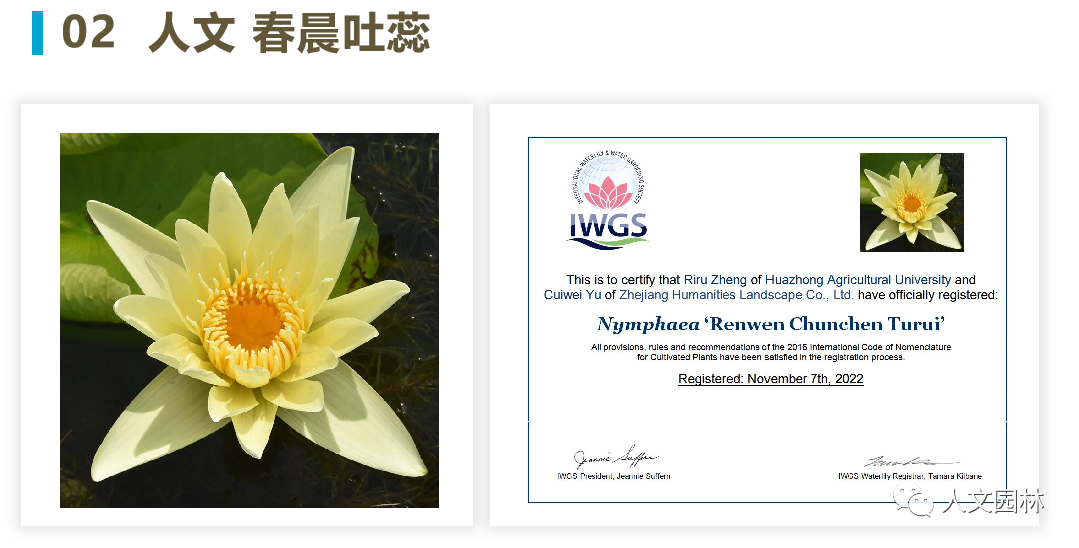 近日,人文園林研究院傳來喜訊——2022年,又有11個以“人文”命名的睡蓮新品種順利通過國際登錄,獲得新品種證書。至此,人文園林獲得國際登錄的睡蓮新品種高達63個!連續多年來,人文園林每年獲得10個以上睡蓮新品種國際登錄,是近年來國內睡蓮國際登錄數量最多的單位。